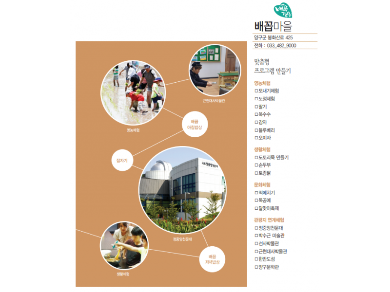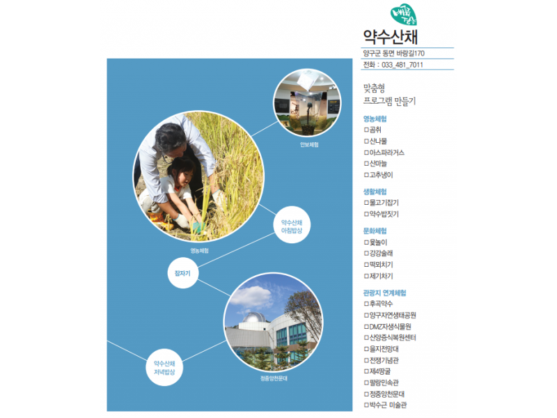 (사)양구군농촌체험관광협의회 | 주소 : 강원특별자치도 양구군 양구읍 황강길 28 | 대표전화 : 033)482-1427 | 전화 : 033)482-1427