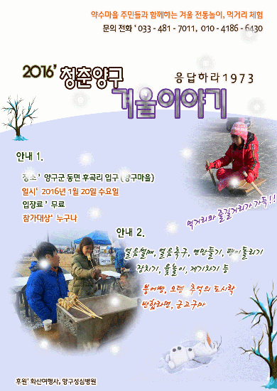 아이들과 함께 양구에 코끝 찡한 겨울도 느껴 보시고, 행복한 추억도 만들어 보시기 바랍니다