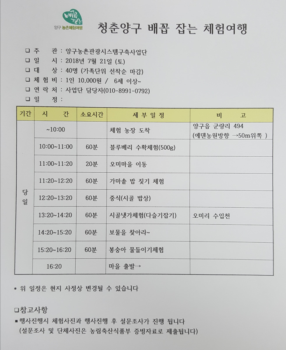 여름휴가시즌을 맞아 아이들과 함께 농촌관광을 통해 가족의 소중함과 공감, 소통이란 주제로