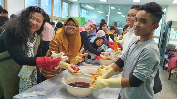 도촌초등학교와 자매결연을 맺어 방문했던 말레이시아에서 온 친구들 모습입니다