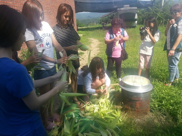신나게 시간가는 줄 모르고 놀다 보면 옥수수 따서 삶아 놓은 간식으로 하모니카도 불며 놀아요