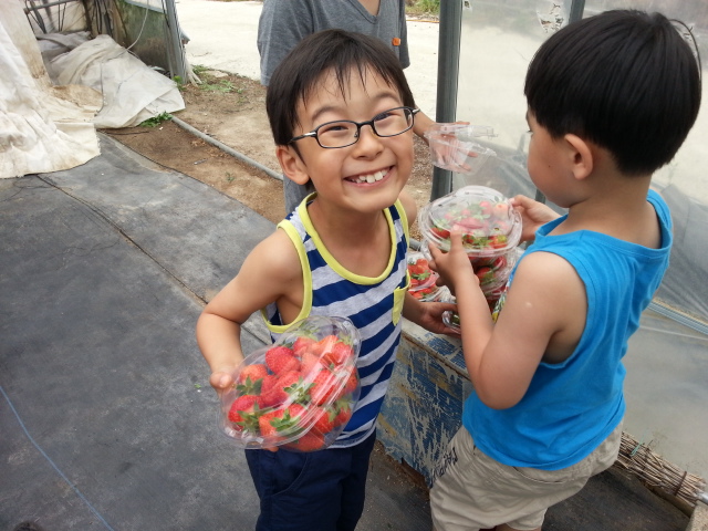딸기체험을 하고 신이난 토끼 처럼 귀여운 아이에 웃음이 기분 좋아집니다