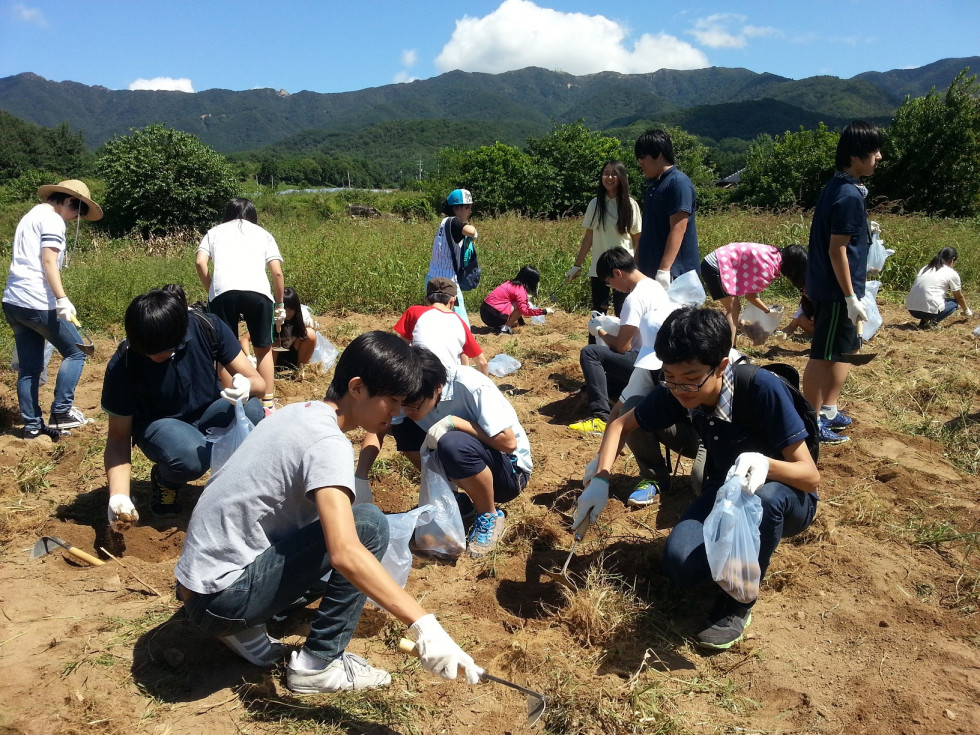 계절 농산물수확 체험 중에 감자캐기와 딸기따기 체험!